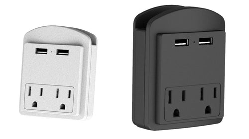 2 - Pack Surge Protector 2 Wall Outlets and 2 USB Ports - Black & White